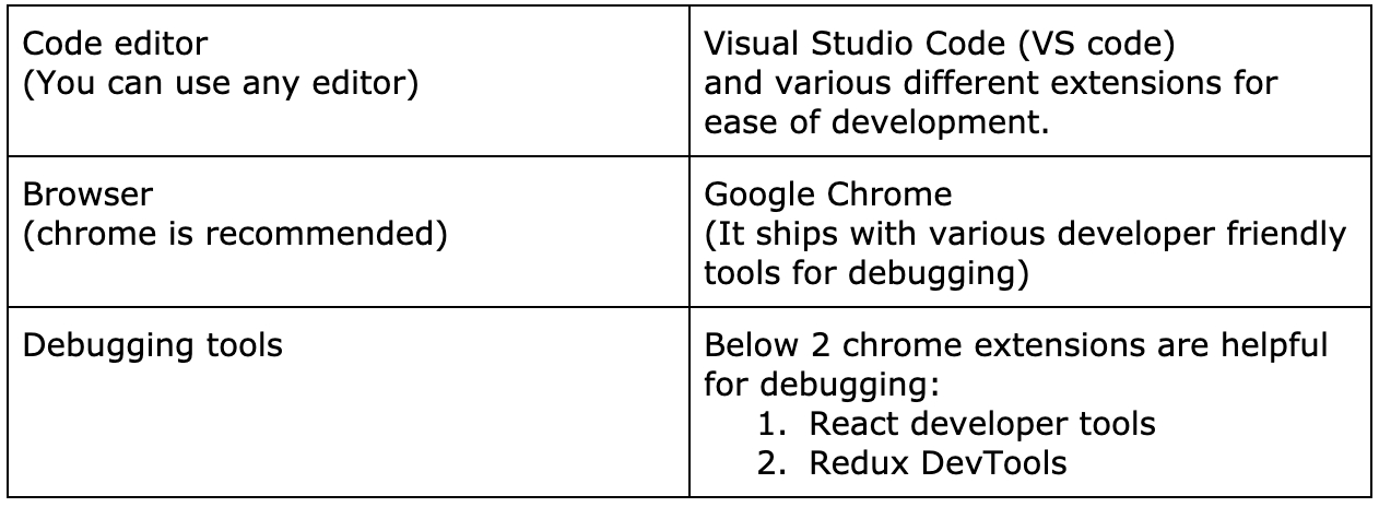 First things first, let’s set up the development environment for working on a react js based web application. Before starting the coding stuff, let me share the list of tools I personally prefer and used while this journey: